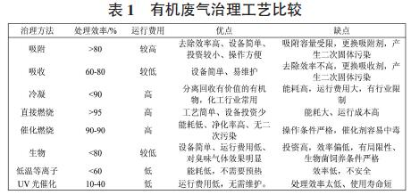 目前,針對揮發性有機廢氣的主流治理技術主要包括吸附法、吸收法、燃燒法、冷凝法、生物法等,有機廢氣的處理技術對比見表1。結合印刷企業有機廢氣的特點,單一的處理工藝很難達到有效治理廢氣的目標,一般工程設計單位會根據有機廢氣特征,在確保尾氣達標的前提下,盡可能采用成熟可靠、處理效率高的處理工藝或者聯合處理工藝,達到治理目的。