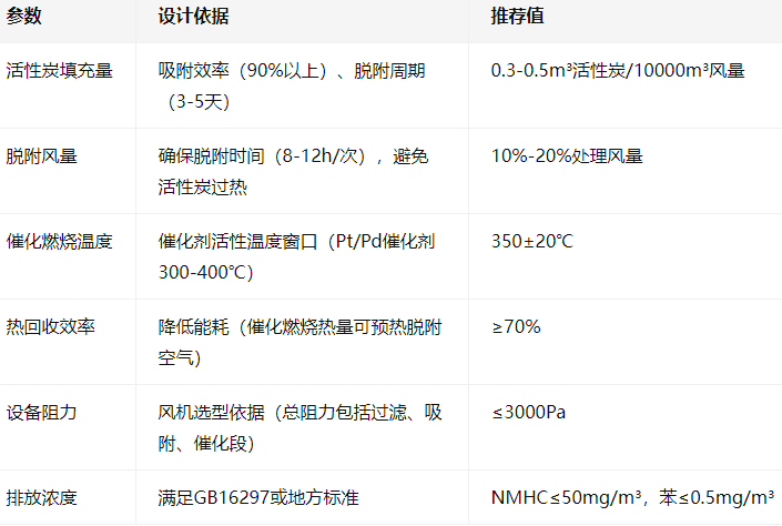 以方案A(活性炭吸附+催化燃燒)為例,關鍵參數設計如下: