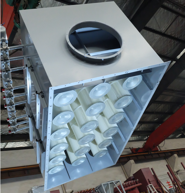 濾筒除塵器以濾筒作為過濾元件所組成或采用脈沖噴吹的除塵器。濾筒除塵器按安裝方式分,可以分為斜插式,側裝式,吊裝式,上裝式。濾筒除塵器按濾筒材料分,可以分為長纖維聚酯濾筒除塵器,復合纖維濾筒除塵器,防靜電濾筒除塵器,阻燃濾筒除塵器,覆膜濾筒除塵器,納米濾筒除塵器等。