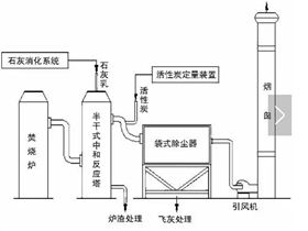 3、石灰漿中和+活性炭噴入+袋式除塵器的組合工藝