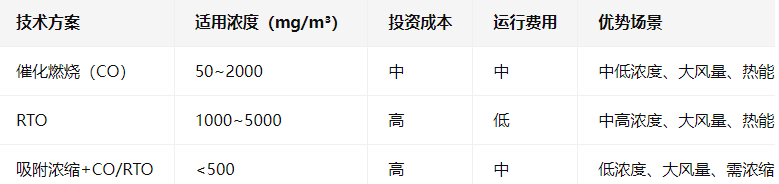 烘爐箱廢氣VOCs濃度通常較低(50~500mg/m³),需結合濃度、風量選擇技術: