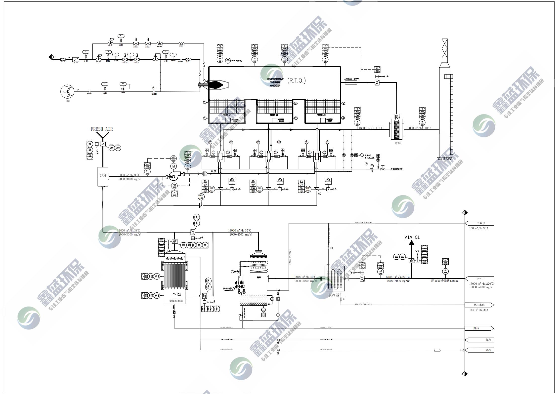 瀝青煙氣經過表冷器降溫至40-50℃后,再經過旋流板塔洗滌掉廢氣中的顆粒物及瀝青煙氣,再進入焦油捕捉器進一步捕捉瀝青煙氣及部分焦油,最后氣態的VOCs進入RTO高溫燃燒,此時廢氣已經達標,然后經煙囪排入大氣。