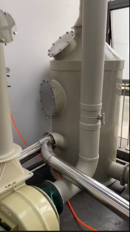 2.PP噴淋塔:通過噴淋裝置將液體(如酸、堿溶液)噴灑到廢氣中,與廢氣中的有害物質發生化學反應,從而去除廢氣中的污染物。PP噴淋塔耐腐蝕性強,適用于處理含有酸堿成分的廢氣。