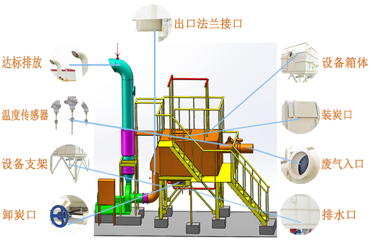 活性炭吸附箱外殼采用Q235碳鋼制作,焊接點保證光滑,平整。塔體內外及網板均表面光滑美觀,塔體零部件(如加固螺絲、進料窗門、把手)防腐 。過濾網便于安裝及拆洗,塔體底部裝有卸料口及排水口。