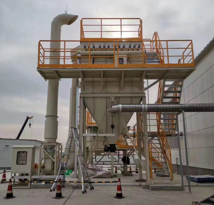 過濾工況:含塵氣體由進氣口進入裝有濾袋的過濾室。濾袋的過濾作用將粉塵阻隔在濾袋外表面,凈化后的氣體穿過濾袋進入上部箱體,經排風管道、由風機排入大氣。