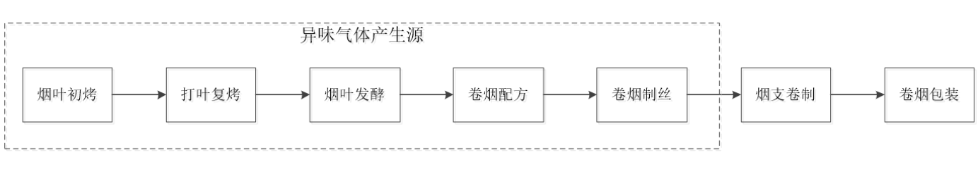 在煙草生產(chǎn)加工過程中,各種生產(chǎn)工藝產(chǎn)生的廢氣分子多達(dá)上千種。卷煙生產(chǎn)中的葉片線、白肋煙處理線、梗線、切絲線、烘絲線、切梗絲線、梗絲膨脹線、摻配加香線、儲(chǔ)絲柜等制絲線及卷接包過程均有可能產(chǎn)生異味廢氣。在卷煙生產(chǎn)過程中,煙草制絲排潮工藝產(chǎn)生的廢氣的化學(xué)物質(zhì)成分相當(dāng)復(fù)雜,主要成分有氨、苯、苯酚、甲苯、甲醇、丙酮、丁烷、氯乙烯、苯胺類、氯苯類、醋酸、丙烯腈等。這些煙草制絲排潮工藝產(chǎn)生的廢氣具有高溫(60-80℃)、高塵(>100mg/m³)、高濕(95%)、異味大、風(fēng)量大的特點(diǎn)。