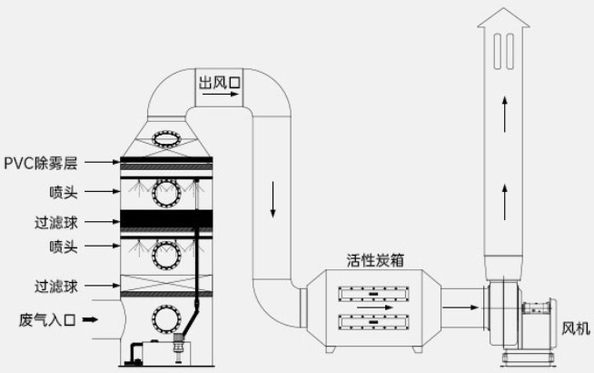 水噴淋+雙活性炭吸附處理工藝: