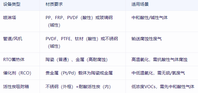 腐蝕性廢氣主要含酸性(HCl、H2SO4、NOx)或堿性(NH3)氣體,易腐蝕設(shè)備,需優(yōu)先中和并選擇耐腐蝕材質(zhì)。
