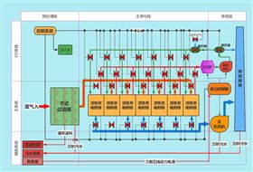 系統(tǒng)配置有一定量的備用吸附設(shè)備,用于吸附設(shè)備吸附飽和后脫附再生時替換使用,備用設(shè)備配置與主吸附設(shè)備相同。控制系統(tǒng)會根據(jù)總的吸附設(shè)備數(shù)量及預計吸附飽和時長,按算法自動切換吸附設(shè)備接入主吸附凈化管路,使廢氣凈化系統(tǒng)中所有吸附設(shè)備的運行時長基本均處于一個脫附期內(nèi),但每臺吸附設(shè)備運行時長相差4小時(單個吸附箱的脫附時長)以上。以保證所有吸附箱在同一個脫附周期內(nèi)全部脫附再生,CO爐不需要頻繁啟動運行,降低系統(tǒng)能耗。