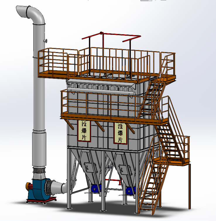 處理工藝及結果:粉塵經收集風管系統收集后,在引風機的抽吸作用下,經過布袋除塵器進行處理,達到排放標準后經排氣筒排放。